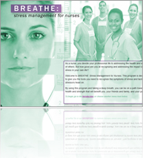 BREATHE is a web-based stress management program specifically oriented toward the unique occupational stressors of nursing. Because nurses are often on the move, this multi-media program includes a mobile application accessible by smartphones and tablets. BREATHE was tested at Mount Sinai Hospital and Inova Health Systems, with significant effects shown on nurses’ stress.